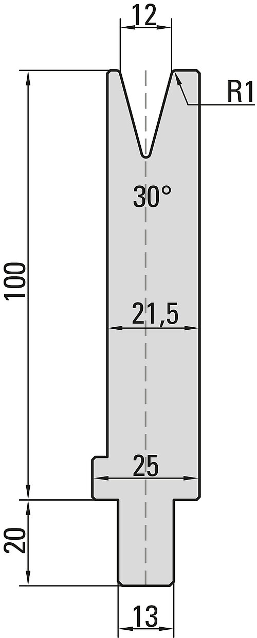 30° Matrize, V=12mm, R=1,0mm, H=100mm, B=21,5mm, L=100mm, UKB-System Trumpf
