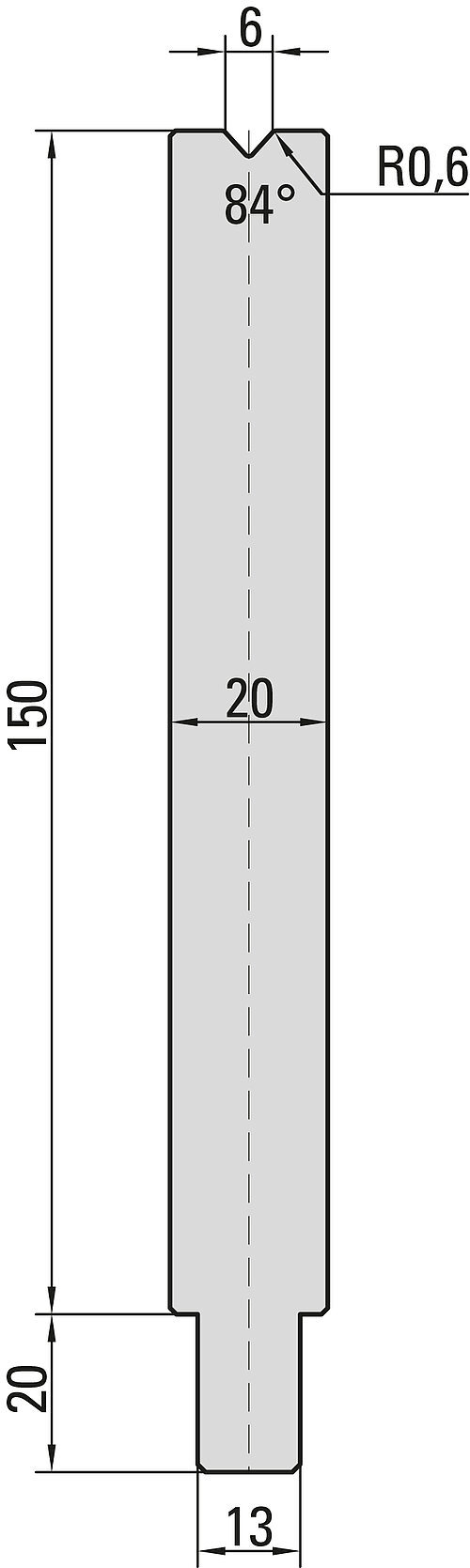 84° Matrize, V=6mm, R=0,6mm, H=150mm