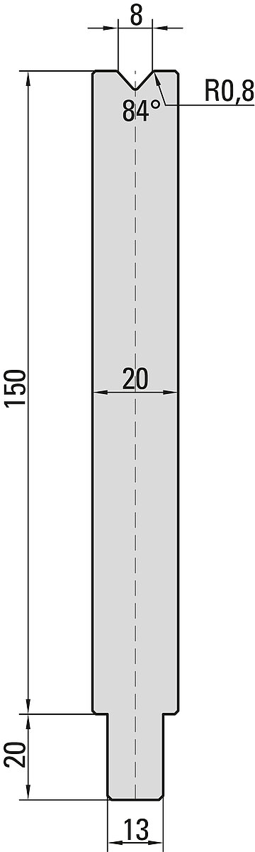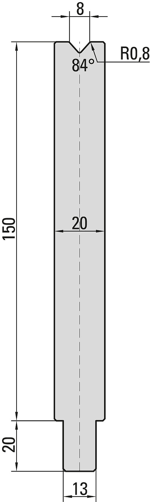 84° Matrize, V=8mm, R=0,8mm, H=150mm