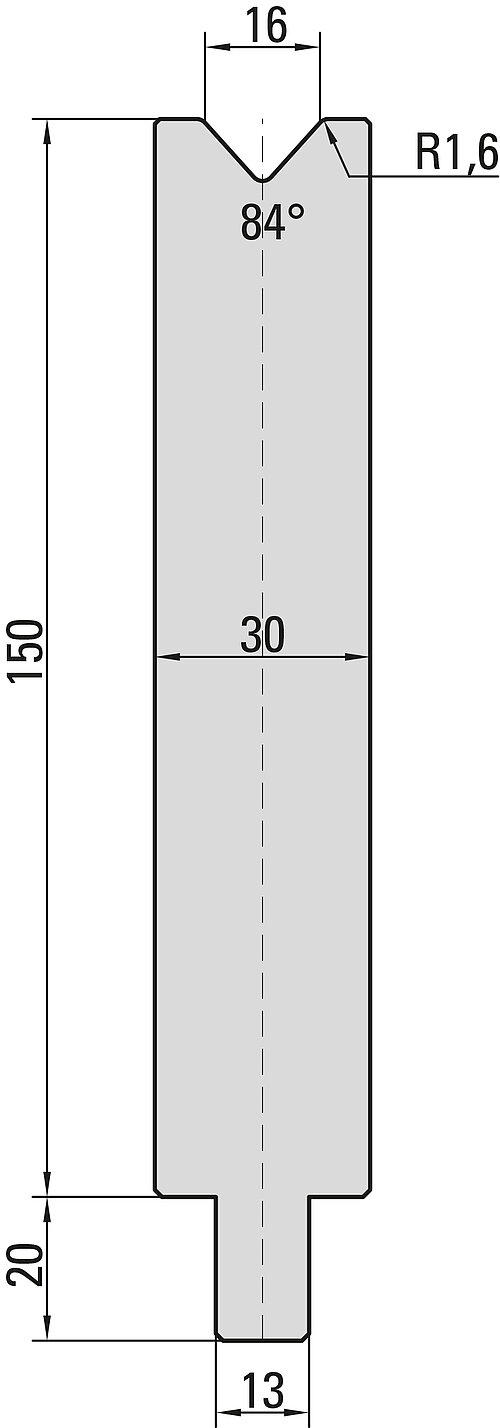 84° Matrize, V=16mm, R=1,6mm, H=150mm