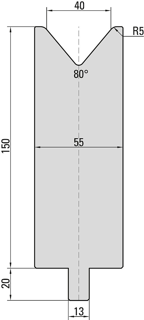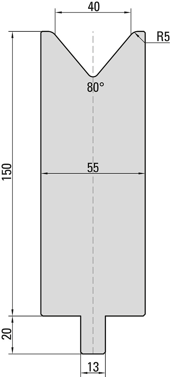 80° Matrize, V=40mm, R=5,0mm, H=150mm
