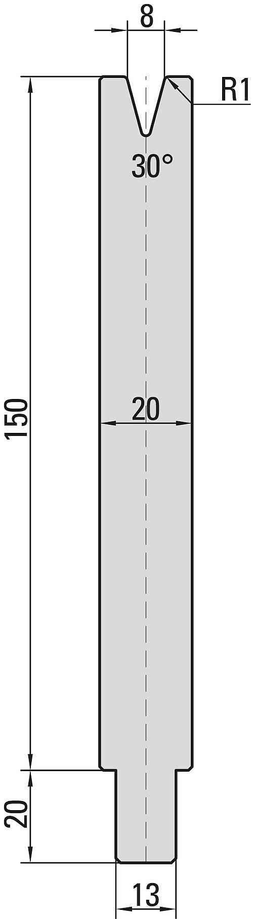 30° Matrize, V=8mm, R=1,0mm, H=150mm