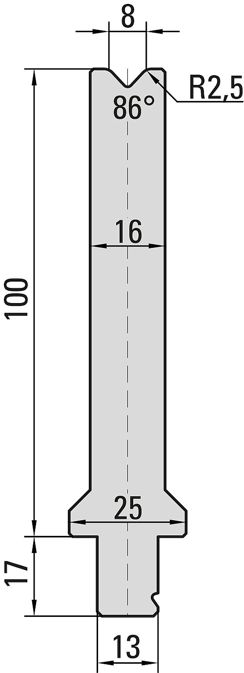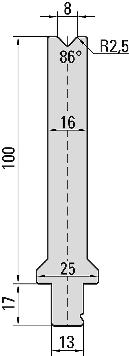 86° Matrize, V=8mm, R=2,5mm, H=100mm, B=16mm, L=100mm, UKB-System Wila