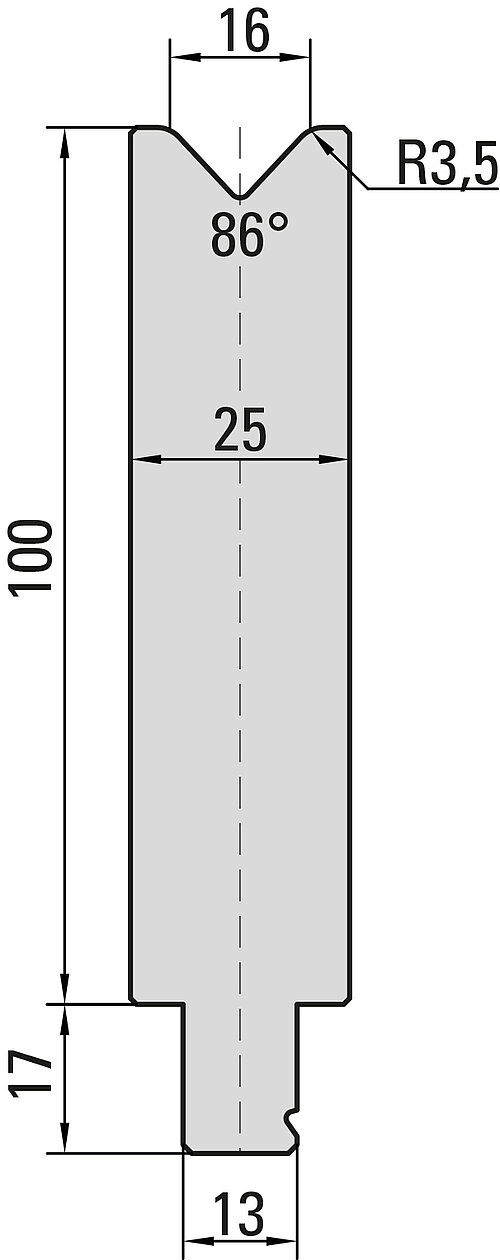 86° Matrize, V=16mm, R=3,5mm, H=100mm, B=25mm, L=100mm, UKB-System Wila