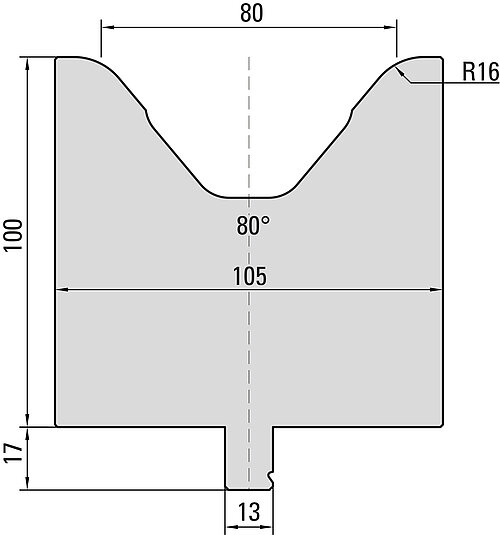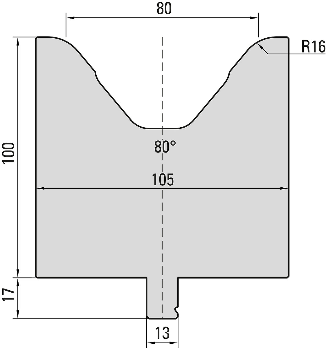 80° Matrize, V=80mm, R=16mm, H=100mm