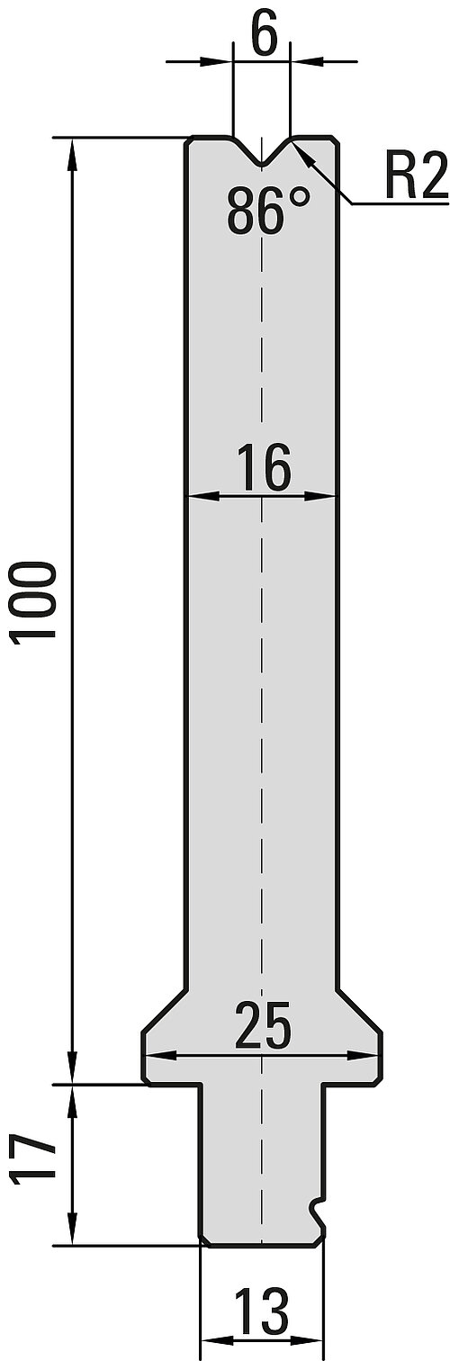86° Matrize, V=6mm, R=2,0mm, H=100mm, B=16mm, L=100mm, UKB-System Wila