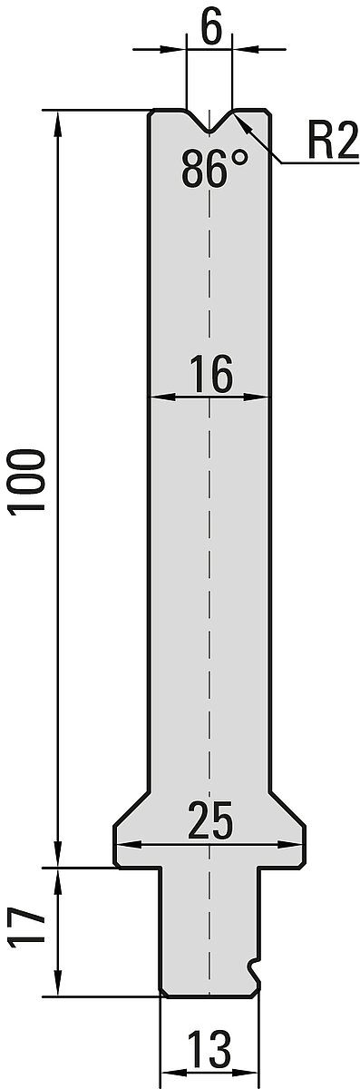 86° Matrize, V=6mm, R=2,0mm, H=100mm, B=16mm, L=300mm, UKB-System Wila
