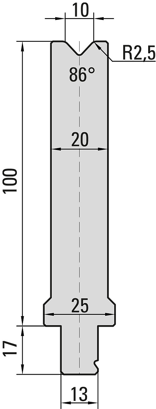 86° Matrize, V=10mm, R=2,5mm, H=100mm