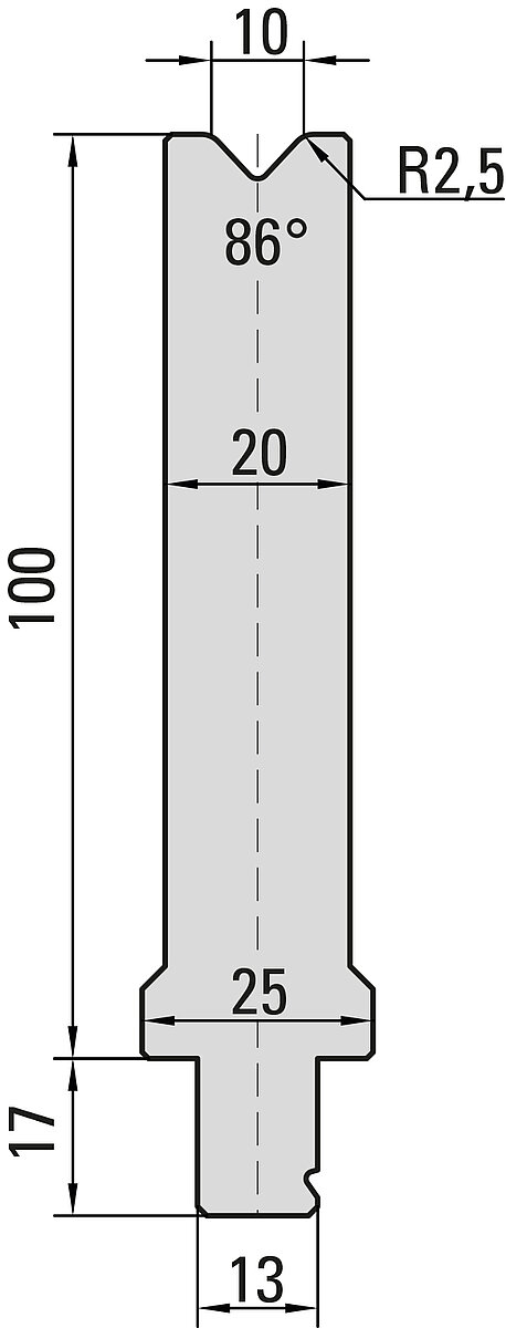 86° Matrize, V=10mm, R=2,5mm, H=100mm, B=20mm, L=100mm, UKB-System Wila