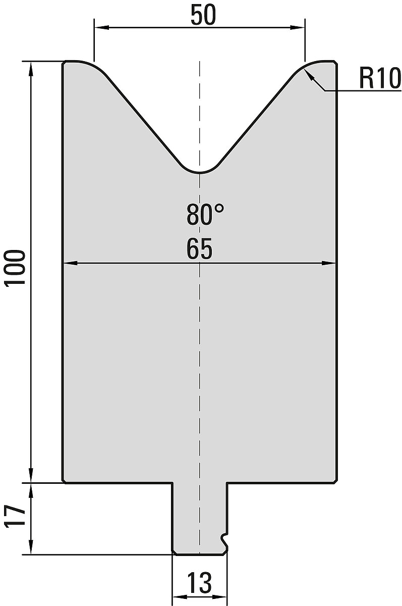 80° Matrize, V=50mm, R=10,0mm, H=100mm