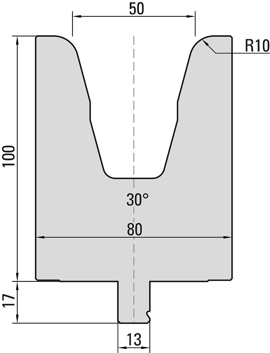 30° Matrize, V=50mm, R=10,0mm, H=100mm
