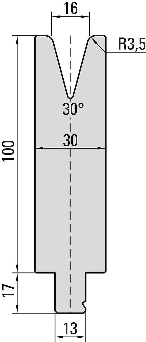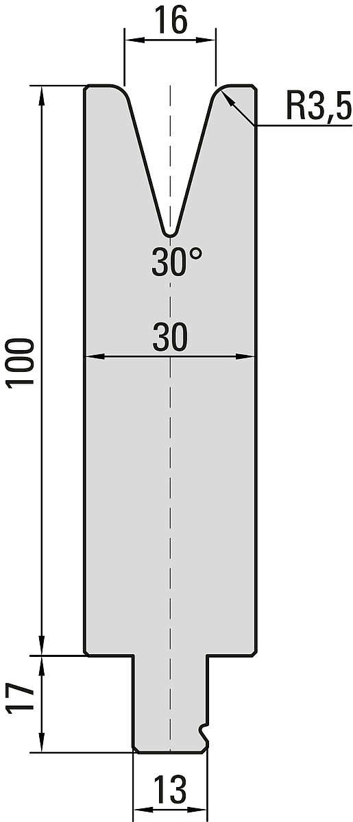 30° Matrize, V=16mm, R=3,5mm, H=100mm