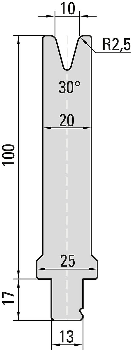 30° Matrize, V=10mm, R=2,5mm, H=100mm
