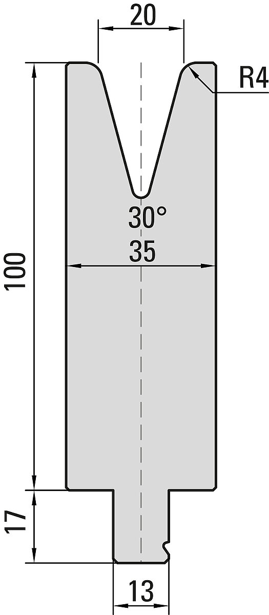 30° Matrize, V=20mm, R=4,0mm, H=100mm, B=35mm, L=100mm, UKB-System Wila