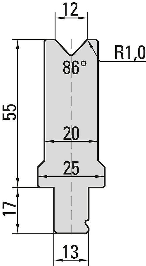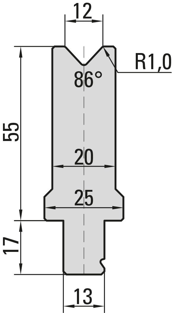 86° Matrize, V=12mm, R=1,0mm, H=55mm