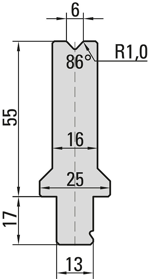 86° Matrize, V=6mm, R=1,0mm, H=55mm, B=16mm, L=300mm, UKB-System Wila