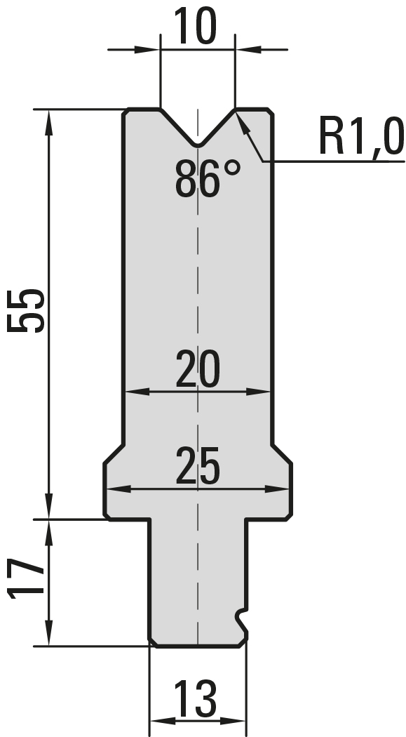 86° Matrize, V=10mm, R=1,0mm, H=55mm