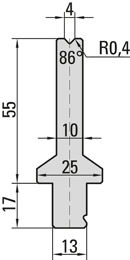 86° Matrize, V=4mm, R=0,4mm, H=55mm, B=10mm, L=100mm, UKB-System Wila