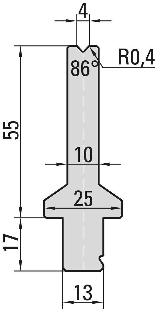 86° Matrize, V=4mm, R=0,4mm, H=55mm