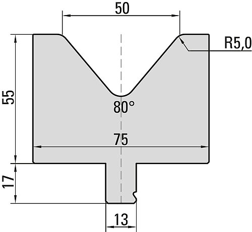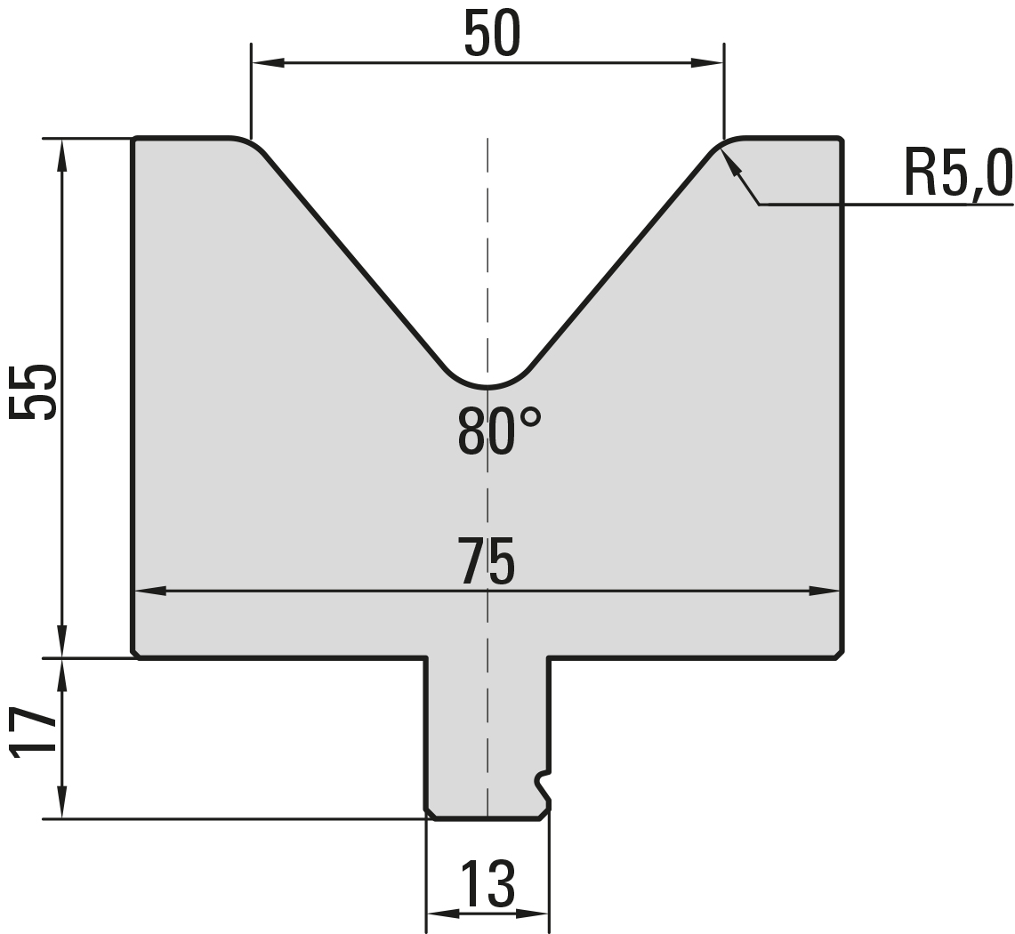 80° Matrize, V=50mm, R=5,0mm, H=55mm