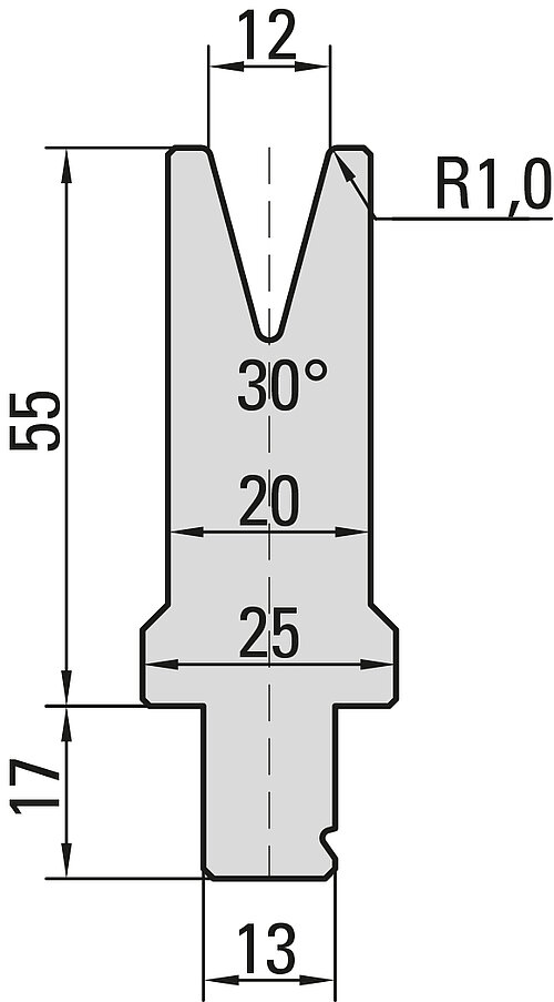 30° Matrize, V=12mm, R=1,0mm, H=55mm