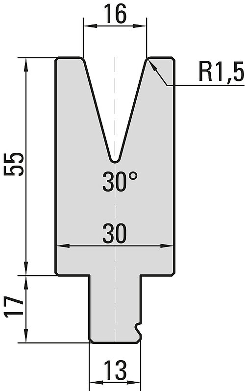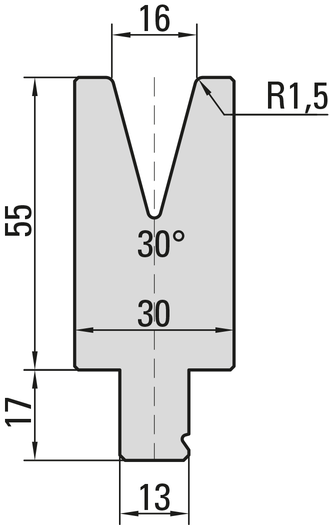 30° Matrize, V=16mm, R=1,5mm, H=55mm