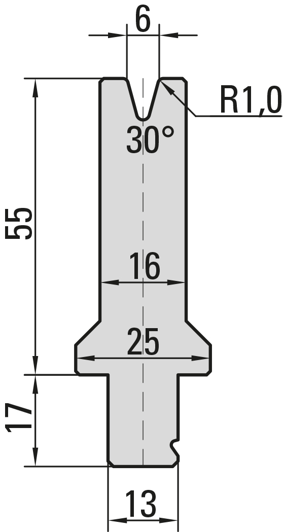 30° Matrize, V=6mm, R=1,0mm, H=55mm