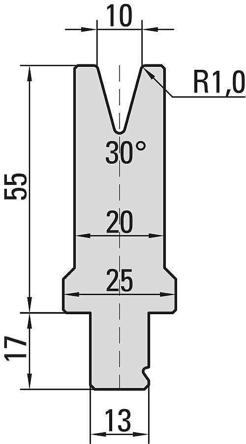 30° Matrize, V=10mm, R=1,0mm, H=55mm, B=20mm, L=100mm, UKB-System Wila
