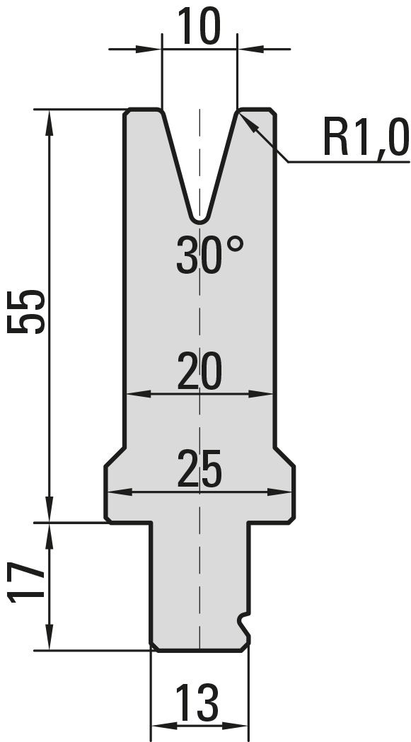 30° Matrize, V=10mm, R=1,0mm, H=55mm