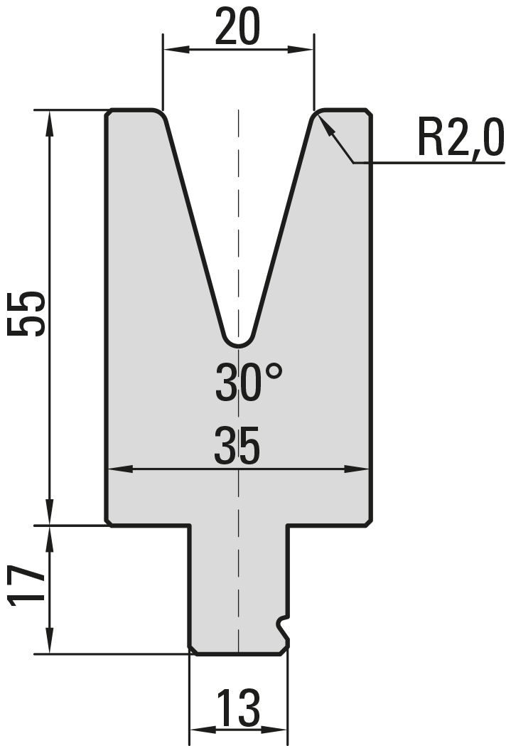 30° Matrize, V=20mm, R=2,0mm, H=55mm