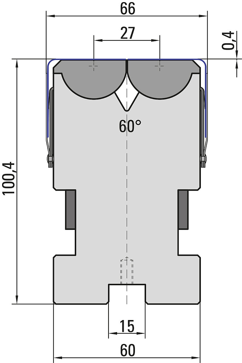 60° WingBend PLUS Matrize für t=3,0-6,5mm, schmal, H=100,4mm, B=66mm,